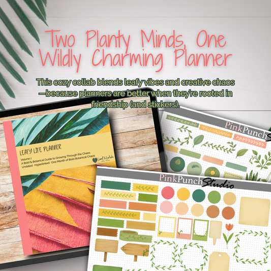 Leafy Life Planner – Volume 1 | Hyperlinked 6-Month Undated Digital Planner + 80 Stickers (Google & Apple Calendar Links | Collab with Pink Punch Studio)