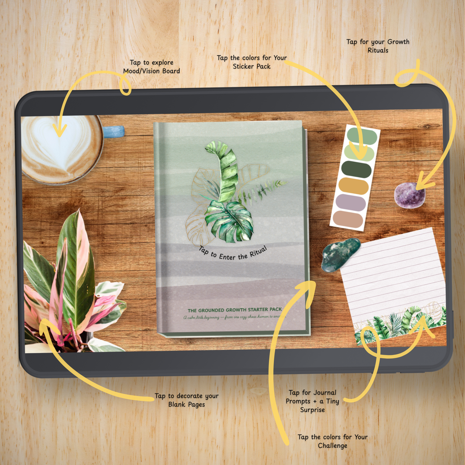 Try the Grounded Growth Starter Pack — a mini Luxe journal designed to help you breathe deeper and get a real feel for our ritual style before you commit.